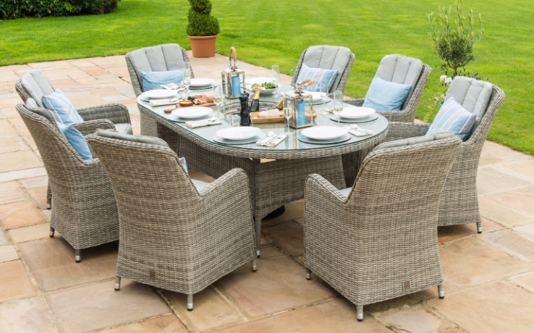 Oakham Grand Oval Dining Set with Ice Bucket, Lazy Susan & 8 Armchairs