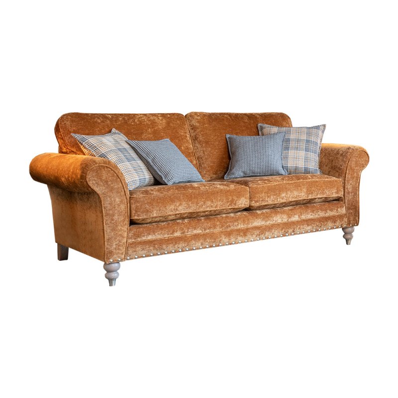 Every piece is hand crafted with meticulous detailing, soft pleated scroll arms are a classic, yet the look remains soft and casual with a further option of carefully finished pewter studwork. The fabric palette of soft greys and slate velvety chenille’s combine perfectly with a mix of smart houndstooth checks or a fusion of more textured global accents to sit with boucle herringbone plain fabrics.