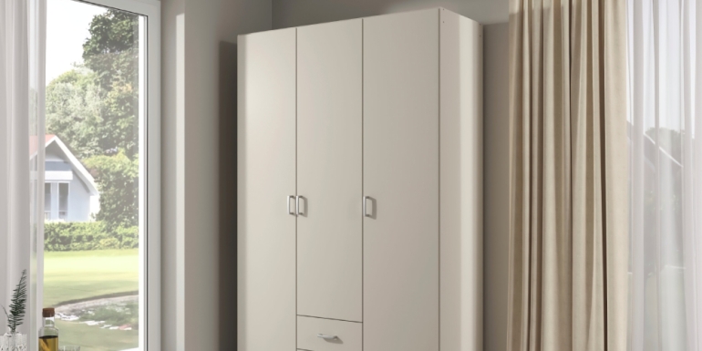 The Genoa wardrobe range features a stylish modern design with a smooth champagne coloured finish, completed with angled aluminium coloured handles and interior hanging rails. These wardrobes offer ample storage space and a sleek aesthetic that suits a wide range of bedrooms.