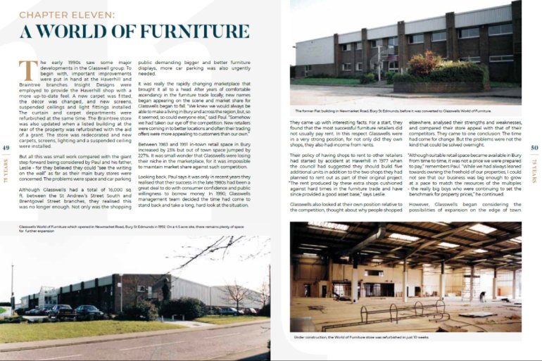 The incredible story of the Glasswells family from Bury St Edmunds; reminiscing on the last 75 exceptional years as a firmly established, best-loved independent retail business and the biggest home department store across East Anglia.