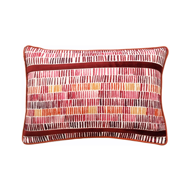Malini Harrison Cushion. Earth Printed Lines With Velvet appliqué stripe. The soft velvet appliqué adds texture and a touch of elegance. It's the perfect addition to any room, providing both style and comfort.