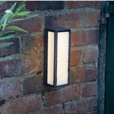 In stock items delivered in 7 days.The Arham Wall Light ARH2139 is a simple LED wall light, made of die cast aluminium in a matt grey finish with white frosted glass. This fitting has an IP65 rating resistant to moisture or dust making it ideal for any outdoor setting.