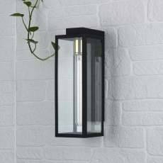 In stock items delivered in 7 days. The Era outdoor light has a modern upright box style with clear, tempered glass panels, that feature bevelled edges. Its modern design is complemented by its powder coated matt black finish with matching lamp holder.