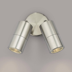 In stock items delivered in 7 days.The Ortega 2 light Wall Light ORT0968 in a brushed aluminium finish features solid aluminium cylinders with a machine polished finish featuring adjustable heads. Complete with highly efficient replacement LED lamps, the ORT0968 has an IP65 rating resistant to moisture or dust making it perfect for outdoor use.