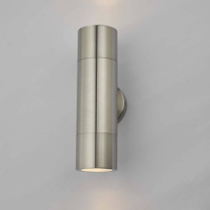 In stock items delivered in 7 days.The Ortega 2 light Wall Light ORT3268 in a brushed aluminium finish features solid aluminium cylinders in a machine polished finish, with up and down lights. Complete with highly efficient replaceable LED lamps, this fitting also has an IP65 rating resistant to moisture or dust making it perfect for outdoor use.