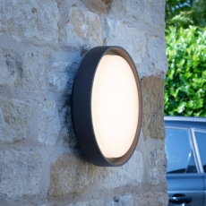 In stock items delivered in 7 days.The Reon 1 Light Wall Light REO3239 is an LED die cast aluminium wall lamp featuring glass encased LED in a round format. With a tough powder-coated anthracite finish this fitting has an IP65 rating resistant to moisture or dust making it ideal for outdoor use.
