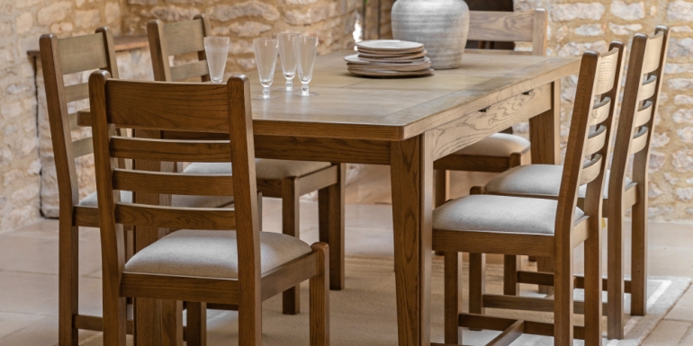 The Huey range focuses on providing a timeless, classically designed selection of dining & living furniture. Highlighting the natural wood finish of the oak & oak veneers used, elegant designs bring warmth and rustic appeal to any home.