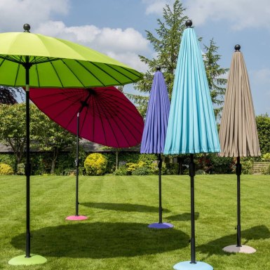 Add a touch of colour and shade to any spot in your garden with our eye-catching Kyoto parasols. These parasols will offer optimal 360° shade & UV sun protection, and all you have to do is sit back and relax! These stunning parasols are made from heavy duty flexible fibreglass with a push button tilt and crank handle for easy opening and closing. Match your parasol with our large range of parasol bases and garden furniture, to create your dream outdoor space. Make sure to like and follow our Facebook page for our latest products, offers and news.