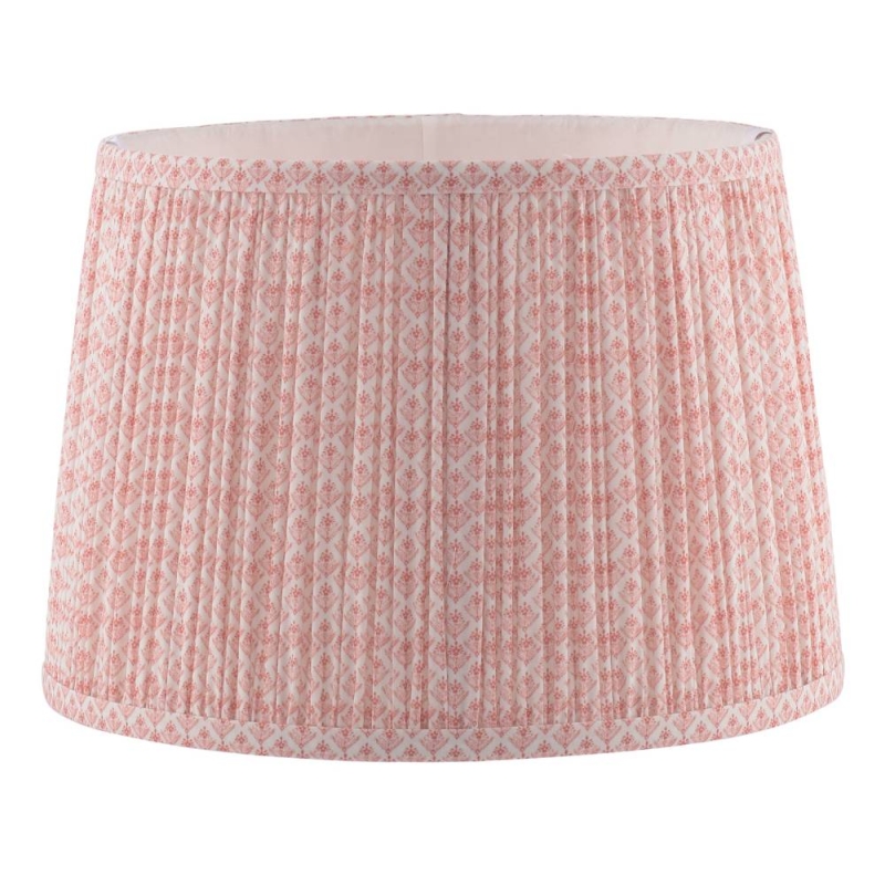 A classic empire tapered shade in cotton, printed in a favourite Laura Ashley diamond-sprigged print in rusty red-pink on a white background and a plain white lining.