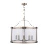 Create a bright and inviting space with the Harrington pendant by Laura Ashley. An elegant blend of clear glass and sleek metal forms a lantern style drum shape, which encases 5 beautiful vintage finished lamp holders. Suspended from a matching ceiling rose and hanging chain, with a clear discreet cable.