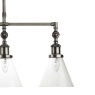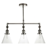 The Laura Ashley Isaac 3-Light Bar Pendant, made by Dar, is a certain modern classic. This elegant three-arm ceiling fitting is the perfect way to update any room in your home, boasting a pewter finish which allows it to work seamlessly with a wide variety of decor styles. The clear glass shades work especially well with decorative filament bulbs to complete the vintage style. Height adjustable, this 3-light pendant is perfect for adding character over a table, kitchen island or bar.