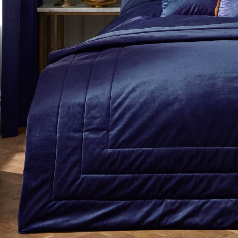 Laurence Llewelyn-Bowen Chic Velvet Bedspread 150cm X 220cm Navy