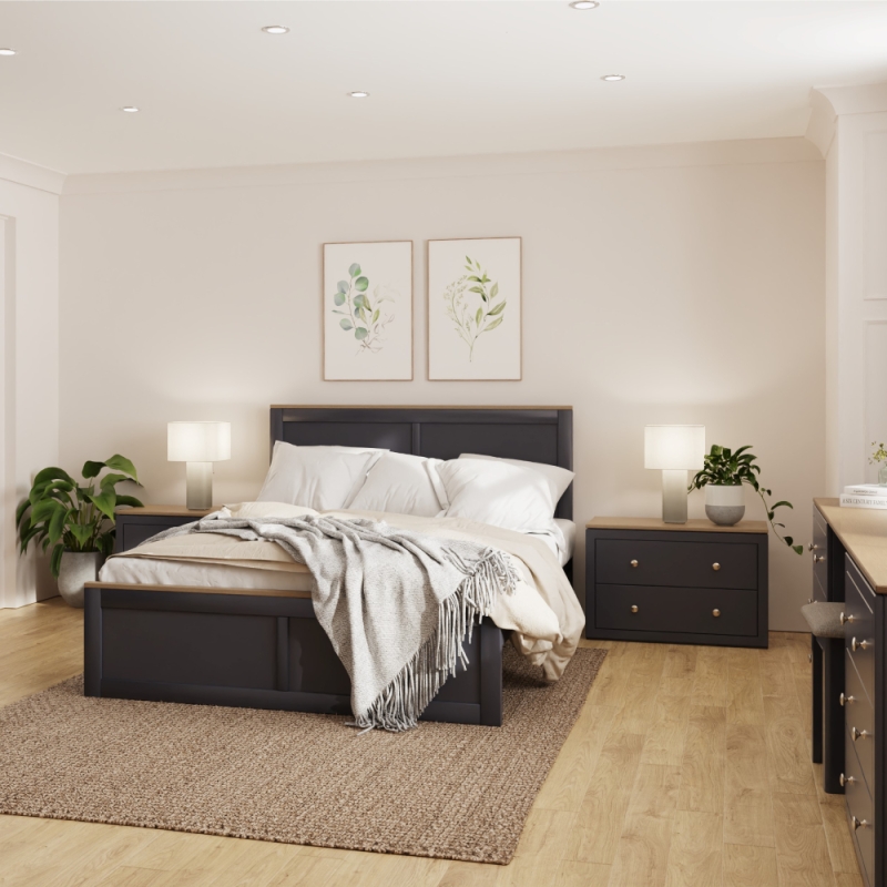 A stunning blend of traditional design and exquisite craftsmanship. Featuring a painted body with the option of either a painted top or solid oak top from a selection of colours and finishes, completed with a choice of handles. This collection can be made to suit any bedroom.