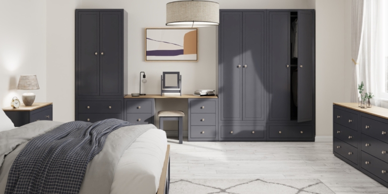 The Mayfair Wide 2 Door 3 Drawer Wardrobe features ample storage space. Boasting traditional style and smooth straight edges, this piece can be finished in a range of colours and handle options allowing it to suit a wide range of bedrooms.