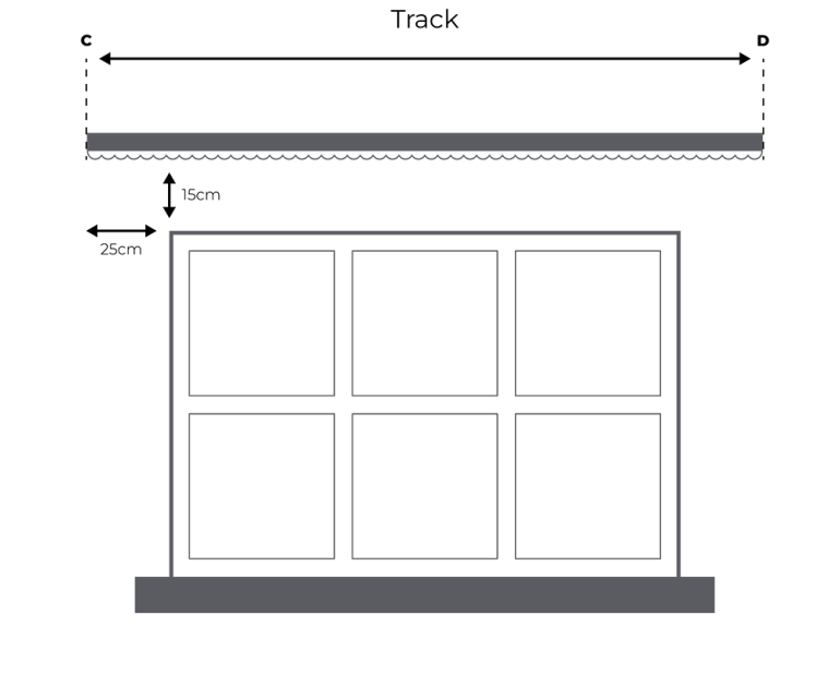 Our window measuring guide will help you if you have a pole; measure the pole width excluding the end finials (from A to B, as diagram shows). If you have a track measure the total width (from C to D, as diagram shows).