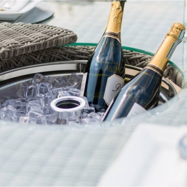 This collection offers everything you need to socialise during the day and into the night, with firepit dining and coffee tables providing warmth and light even after dusk. Tables with integrated ice buckets and Lazy Susans have been designed for sharing with all your family and friends.