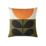 Printed onto a textured 100% cotton base, this Sunflower design by Orla Kiely has a graphic retro feel. In a mid-century inspired colour palette of warm cream, olive green and bright orange, this cushion features Orla Kiely’s signature Scribble print texture on the reverse.